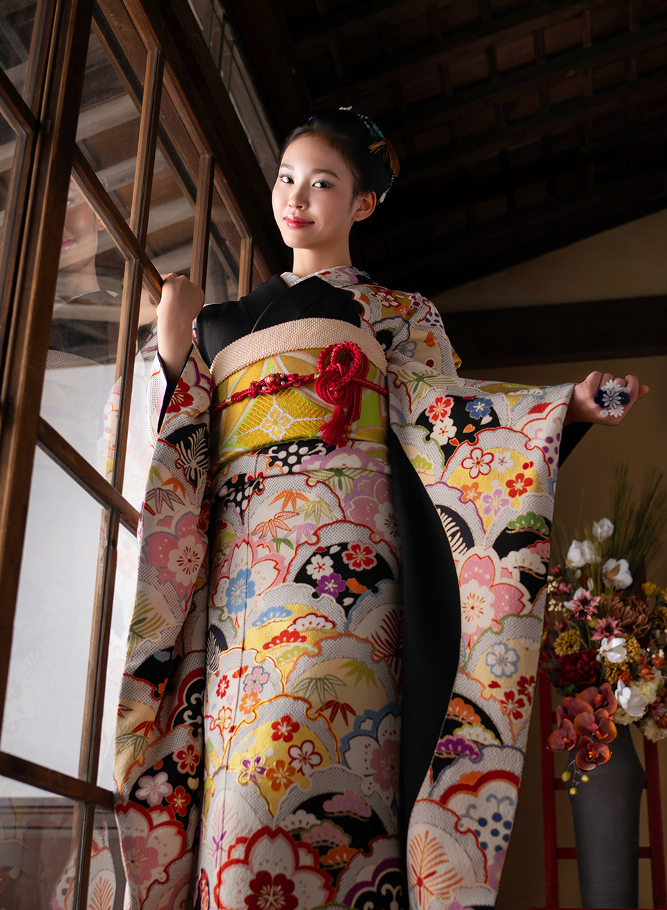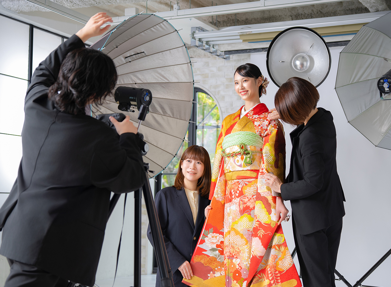 振袖の美しさとお嬢様の魅力を最大限に引き出すため、ライティング・ポージング・表情づくりまで丁寧にサポートいたします。