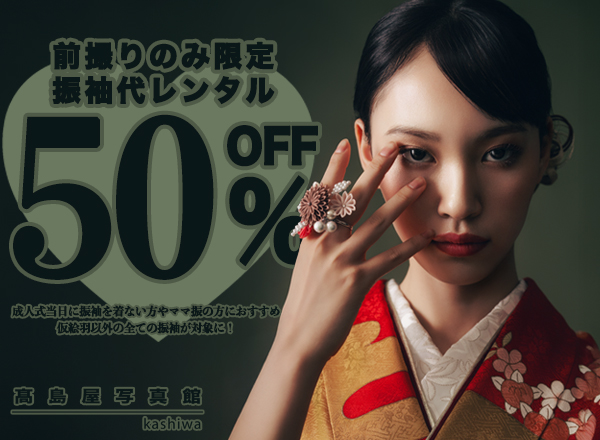 「柏」「振袖レンタル」「成人式前撮り」「振袖写真」「着付け」「ヘアメイク」を、